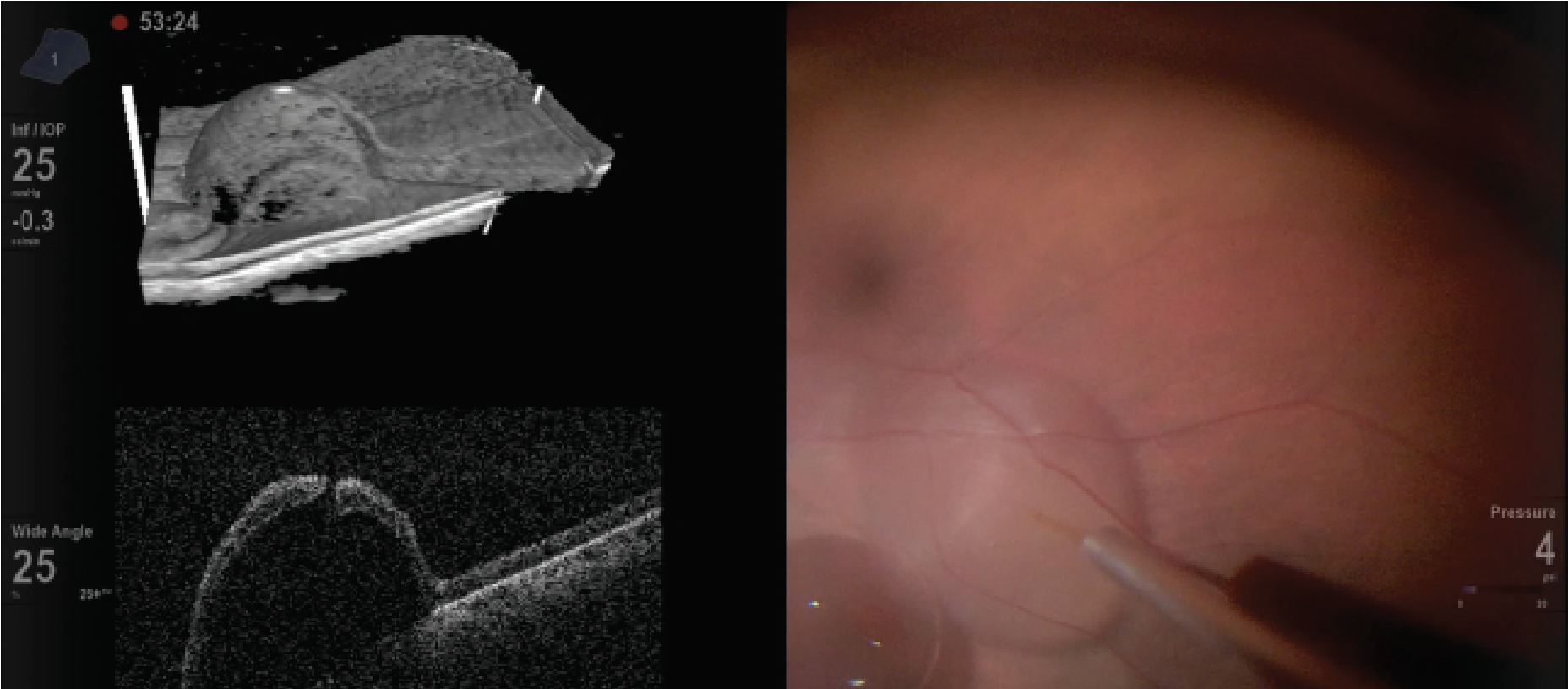 | Figure 3. Heads-up display during gene therapy placement with intraocular optical coherence tomography. |