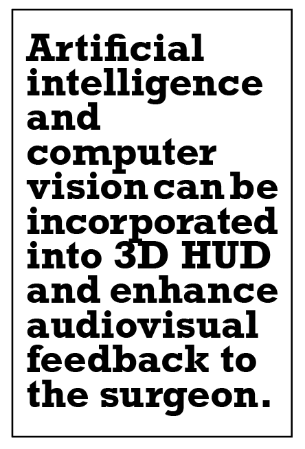 Artificial intelligence and computer vision can be incorporated into 3D HUD and enhance audiovisual feedback to the surgeon. In cataract surgery, a deep-learning algorithm was developed that could provide real-time identification of surgical phase.