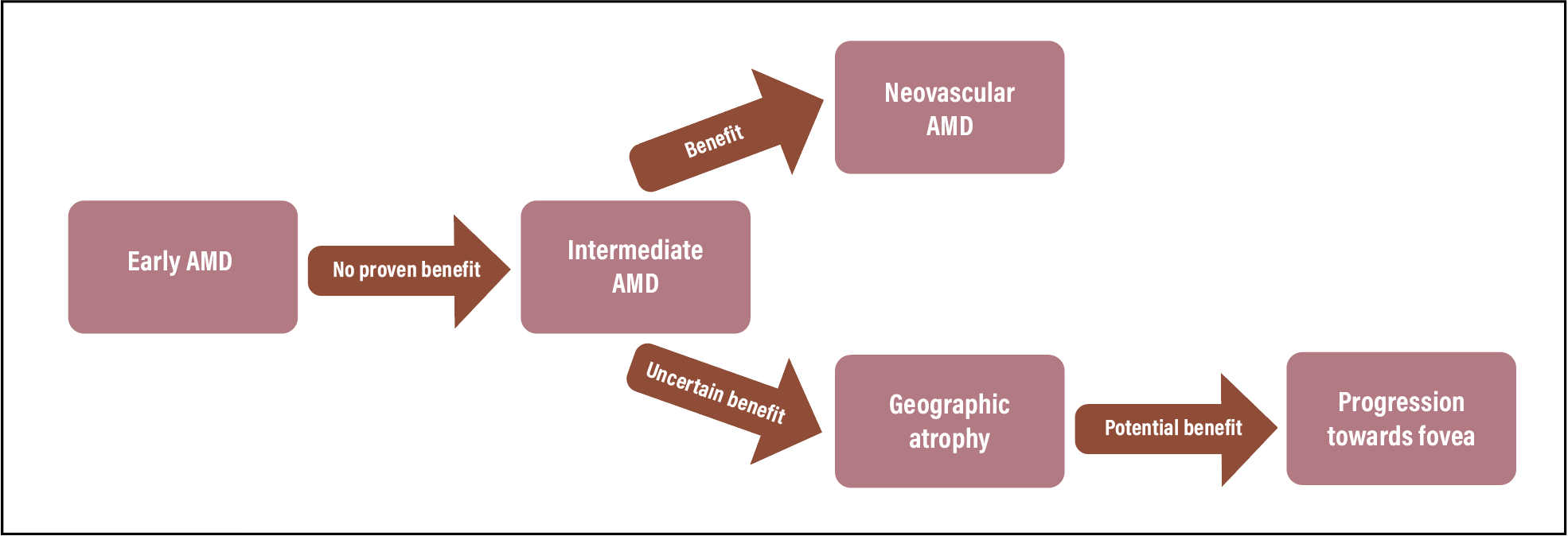 | Figure 3. Diagram illustrating the potential benefits of oral micronutrient supplementation for different stages of age-related macular degeneration. |