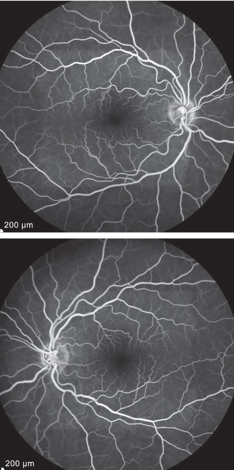 | Figure 4. Fluorescein angiography was unremarkable in both eyes. |
