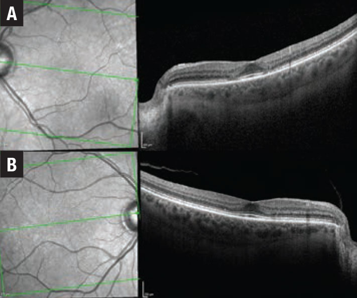 Ronald B. Melles, MD, and colleagues further described in their study that 50 percent of patients of Asian descent had pericentral changes (more than 8 degrees from the fovea), compared to 2 percent in white patients6—an observation that correlates with the findings in our second patient.6