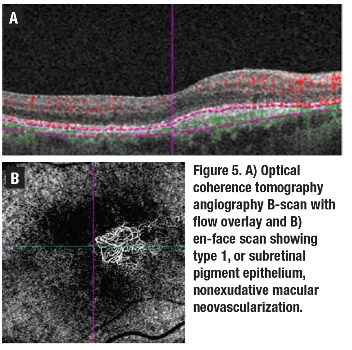 In 1973, John Sarks, MD, and colleagues reported a series of patients who had no clinical signs of neovascularization, but had type 1 MNV as revealed by histopathological analysis.3 More recently, with the advent of OCT angiography, many reports of patients with nonexudative, neovascular membranes have been published, suggesting the terms exudative and neovascular shouldn’t be used interchangeably.