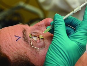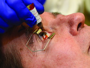 The first step involves administration of a sterile topical anesthetic. Retina specialists may consider subconjunctival anesthesia, but this requires additional instrumentation and manipulation that may be associated with increased surface flora. If subconjunctival anesthesia is used, keep in mind that the needle used for intravitreal injection passes through the subconjunctival space filled with anesthetic and that surface bacteria may have been introduced beneath the conjunctiva.