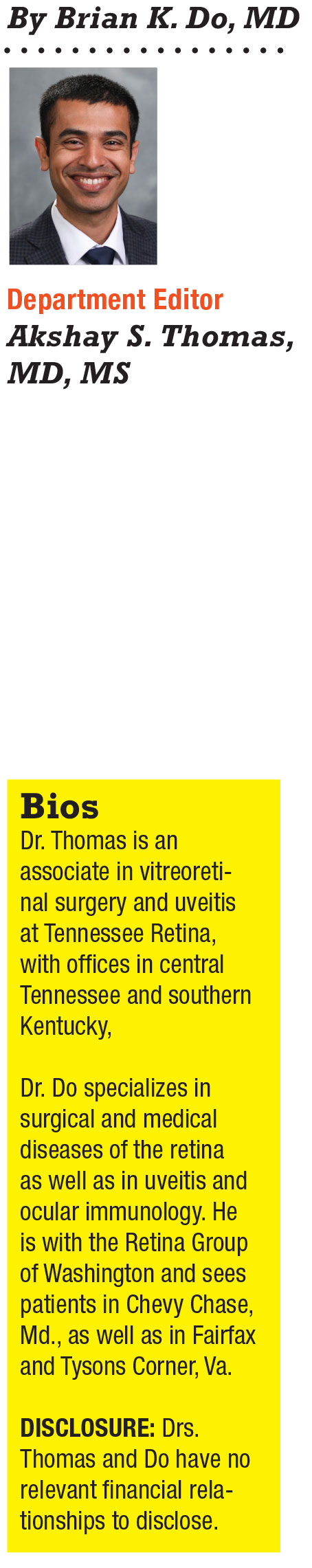 Being able to provide prognostic information about associated systemic morbidity and likelihood of recurrence alone is reason enough to warrant checking for HLA-B27 positivity in these patients. The SENTINEL study has shown that if a patient is HLA-B27 positive and experiences sudden-onset anterior uveitis, the likelihood of having or developing spondyloarthropathy is 90 percent.4 Those of us who have seen patients with severe spondyloarthropathy in the setting of HLA-B27-associated recurrent acute anterior uveitis, I’m sure, would love to turn back the clock and implement treatment with disease-modifying agents to prevent these types of problems from occurring in the first place.