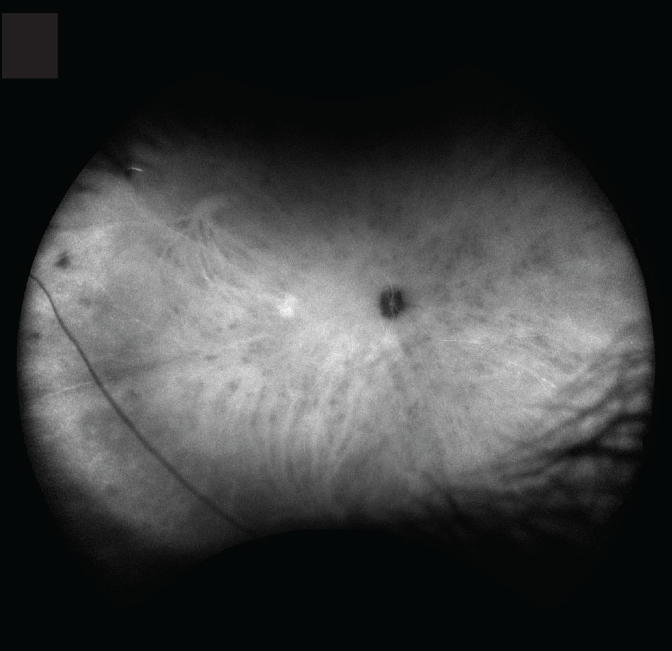 Cystoid macular edema, vascular attenuation, subretinal neovascularization and optic nerve atrophy may accompany advance-stage BSCR.9 Vision loss is more notable in later stages and correlates highly with macular edema or photoreceptor loss secondary to diffuse retinal damage.9,10