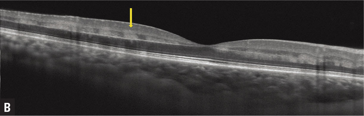 The OCT features of PAMM are distinctive (Figure 1), and are more readily recognized when clinicians realize that structural grayscale SD-OCT images offer greater visibility of subtle OCT reflectivity compared to the false color scale.