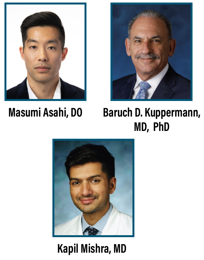 Bios Dr. Asahi is a vitreoretinal surgery fellow at the Gavin Herbert Eye Institute at the University of California, Irvine. Dr. Kuppermann is the Steinert Endowed Professor and Chair of Ophthalmology at the Gavin Herbert Eye Institute and codirector for the Center for Translational Vision Research. Dr. Mishra is a clinical assistant professor of ophthalmology at the Gavin Herbert Eye Institute. He specializes in vitreoretinal surgery and diseases as well as ocular oncology. DISCLOSURES: Dr. Asahi has no relevant disclosures. Dr. Kuppermann disclosed financial relationships with Allergan/AbbVie, Apellis Pharmaceuticals, Genentech/Roche, Ionis, Iveric Bio, Novartis, Regeneron Pharmaceuticals, RegenXBio, Allegro Ophthalmics, Amgen, Aviceda Therapeutics, Dr. Mishra is a consultant for Bausch + Lomb and RegenxBio. |