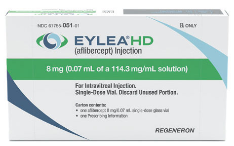 With the FDA approval of aflibercept 8 mg (Eylea HD, Regeneron Pharmaceuticals) for three indications in retina—neovascular age-related macular degeneration, diabetic macular edema and diabetic retinopathy—retina specialists have a new option for longer-term treatment intervals. The label recommendation for nAMD and DME is eight to 16 weeks after three monthly loading doses, and, for DR, eight to 12 weeks after the loading doses.