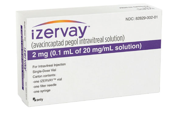 Avacincaptad pegol 2 mg is a complement C5 inhibitor (ACP, Izervay, Iveric Bio/Astellas Pharma) the Food and Drug Administration approved for monthly treatment of GA. The approval was based on results from the Phase III GATHER1 and GATHER2 pivotal Phase III trials. Upon its approval, Astellas said the drug would be available in two to four weeks.