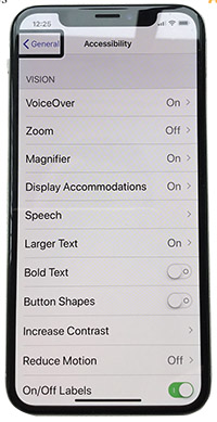 In 2008, the fully accessible iPhone 3s came to market. This was the first smartphone designed to accommodate the entire spectrum of vision loss. The accessibility settings on the iPhone included large text, zoom, invert colors and VoiceOver, a full-function screen reader (Figure 1). It was a pivotal moment: a popular consumer product, with built-in accessibility ready to go right out of the box at no extra cost.