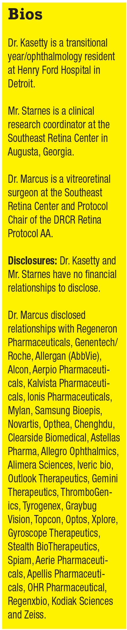 Anti-VEGF agents have been shown to produce superior or equivalent visual outcomes while minimizing visual field loss and proliferative consequences compared with PRP.2-4 While anti-VEGF agents offer many benefits, therapy is more expensive, the treatment burden is higher and follow-up and monitoring more frequent than PRP alone. Patient non-compliance with follow-up has remained an issue.3,5