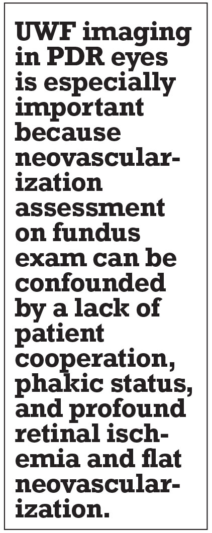 For years, the American Academy of Ophthalmology preferred practice patterns didn’t recommend FA as a necessity in the diagnosis and management of PDR. With the incorporation of widefield FA as a supplement to fundus photography and clinical examination, it has emerged as a valuable tool.8,24