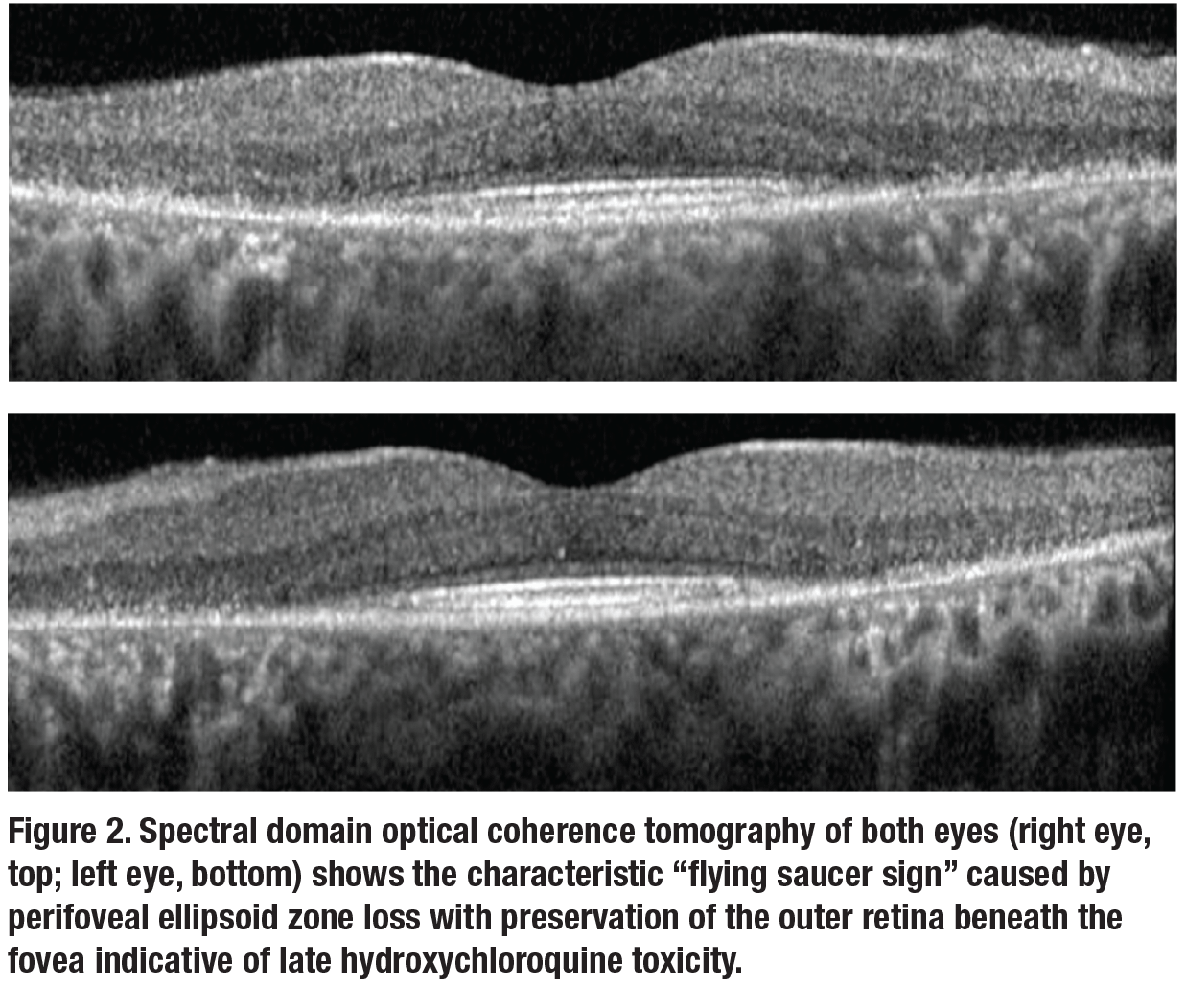 Approximately 35,000 Americans were taking HCQ in 2016.5 Given its favorable therapeutic profile in a broad range of conditions, the long-term use of HCQ is expected to grow, particularly among SLE patients for whom many physicians now advocate early HCQ initiation. In this context, the burden often falls to the ophthalmologist to screen for vision-threatening HCQ retinopathy and recommend cessation of this life-altering and life-saving medication when such toxicity develops.1,5