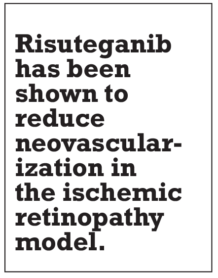 RSG has also been shown to reduce neovascularization in the ischemic retinopathy model. Additionally, Dr. Campochiaro and colleagues have reported that RSG reduced the total area of neovascularization by approximately 87 percent, vs. approximately a 50-percent reduction for aflibercept (Eylea, Regeneron).22