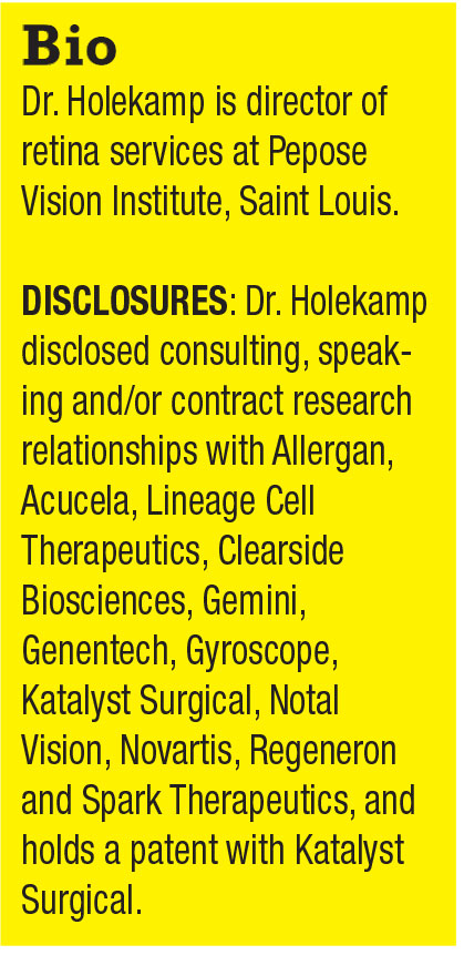 Editor’s note: This article is based on a presentation Dr. Holekamp gave at the 37th annual meeting of the American Society of Retina Specialists July 27, 2019, in Chicago.