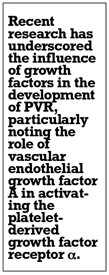 Recent research has underscored the influence of growth factors in the development of PVR, particularly noting the role of vascular endothelial growth factor A (VEGF-A) in activating the platelet-derived growth factor receptor α, a key player in PVR’s etiology.23