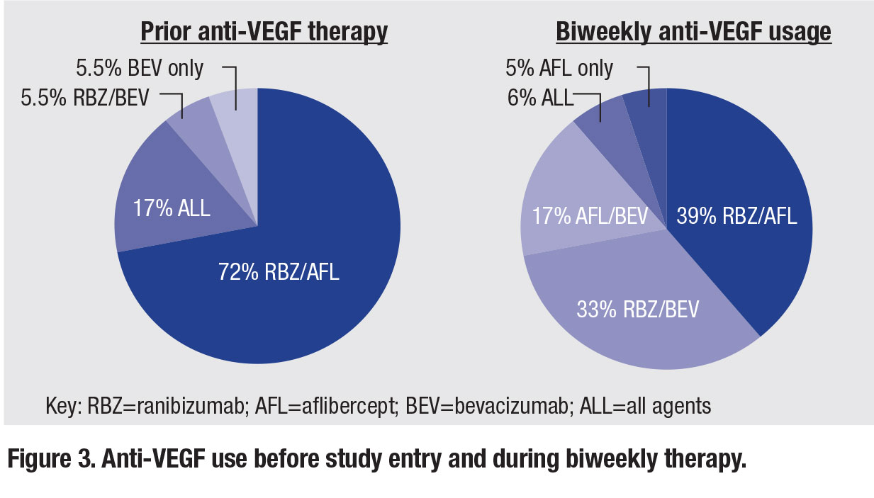 anti-VEGF agent combinations used prior to and during biweekly therapy.