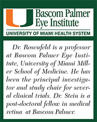 Rinucumab (Regeneron) is a monoclonal antibody intended to bind to the PDGF-β receptor, preventing the action of PDGF.9 This drug is in a Phase II study and is being used in combination with aflibercept in a co-formulated single injection.