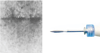 | Figure 3. The one-step cannula system produces slit incisions and requires less mean piercing force than previous systems. |