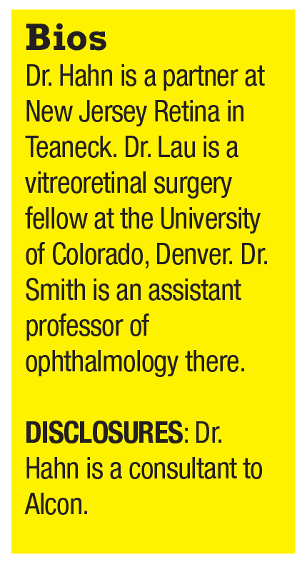 Next, a standard air-fluid exchange was performed with careful aspiration directly over the optic nerve to avoid displacing the HAM graft, and endotamponade was instilled. Although Dr. Rizzo has demonstrated effective closure of recurrent macular holes plugged with HAM using 20% SF-6 gas, in this case 1,000-cS silicone oil was used as the endotamponade due to the patient’s monocular and aphakic status.