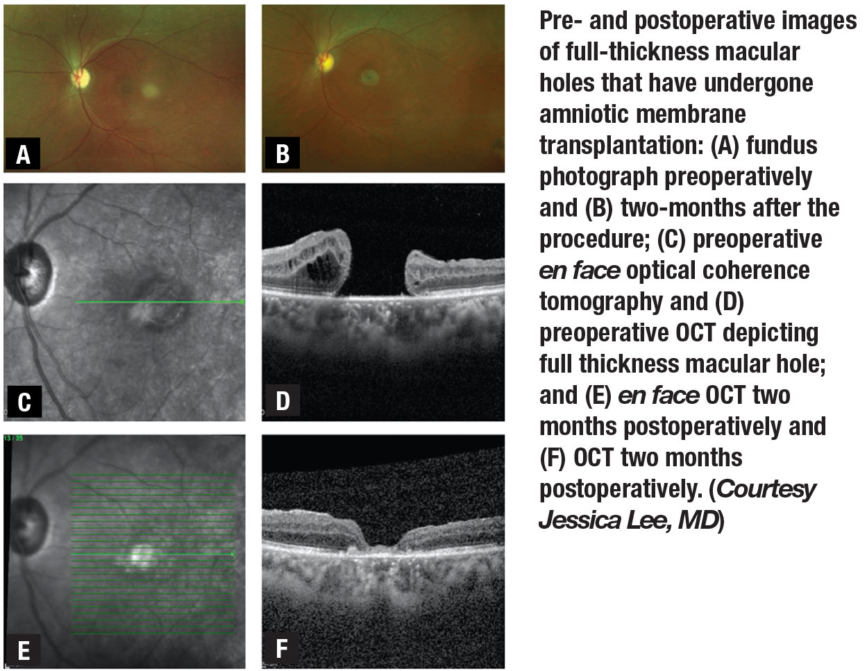 4. Lee J, Chua M, Jansen JE, et al. Amniotic membrane subretinal transplantation to promote closure of persistent full-thickness macular holes. Paper presented at ASRS 2020 Virtual annual meeting; July 24, 2020.