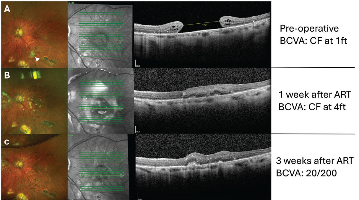 ART, in particular, has shown encouraging results, significantly improving both visual acuity and closure rates in refractory and large MHs, with minimal reported complications.7 However, the ART procedure is technically challenging and optimizing preoperative assessment and surgical technique is crucial for success.