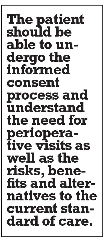Additionally, the patient should be able to undergo the informed consent process and understand the need for perioperative visits as well as the risks, benefits and alternatives to the current standard of care-—i.e., continued intravitreal injections.