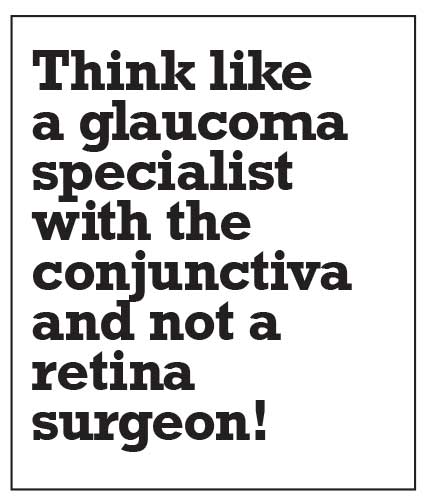 As with any surgical procedure, each step builds upon the previous one, so it’s important to be meticulous with each step to avoid a future problem. For example, when making the sclerotomy, use the fixed metal guide that comes with the implant so that the opening is approximately 3.5 mm.