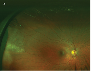 The Optomap (Optos) ultra-widefield imaging is a non-contact, nonmydriatic system that allows rapid, office-based photography and FA of a wider retinal arzttea (200°). Optomap imaging has been reported in patients as young as 5 years with a number of pediatric retinal conditions,1,2 and we have used it on some children as young as 3 years (Figure 1, page 16). Additionally, Optomap ultra-widefield FA-guided panretinal photocoagulation has been reported in patients with conditions such as Coats’ disease and familial exudative vitreoretinopathy.1 Recent studies describe a “flying baby” technique of holding premature infants upright onto the Optomap interface for ROP imaging,3 but the technique is technically challenging and typically does not work in babies older than 6 months.4