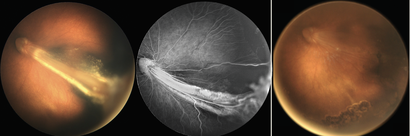 Pediatric TRDs are most common in the setting of retinopathy of prematurity, FEVR (Figure 3), and persistent fetal vasculature and, rarely, in incontinentia pigmenti and Norrie disease. Key principles in the management of pediatric TRDs include: