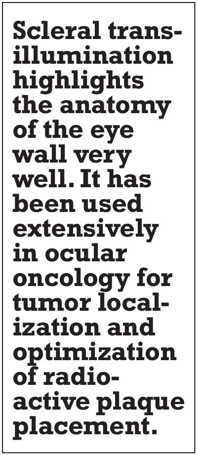 Scleral transillumination is not a novel technique. It has been and continues to be used in ocular oncology for localization of intraocular tumors and optimization of radioactive plaque placement. Yet, its use in intraocular surgery hasn’t gained traction.