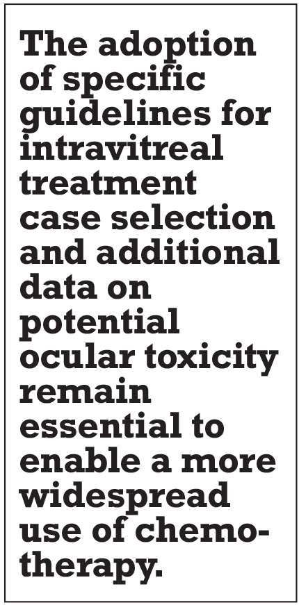 Further studies are required to assess the safety of long-term intravitreal therapy and to better delineate its role in the management of retinoblastoma. The adoption of specific guidelines for intravitreal treatment case selection and additional data on potential ocular toxicity remain essential to enable a more widespread use of this treatment.