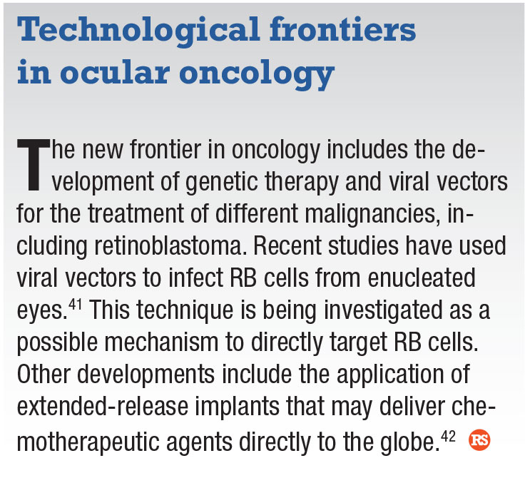 Ocular oncology is currently navigating through a therapeutic revolution that is geared toward the application of focal individualized therapies. The majority of these changes in management have happened without clinical trials. Clinical experience remains the most important tool in the management of patients with RB. We anticipate large randomized clinical trials that will better delineate how to use the available therapeutic options more efficiently. RS