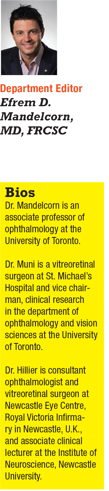 Although each step of a pneumatic retinopexy is seemingly simple, it’s an art that can be acquired only with experience. Over time, you’ll learn nuances and modifications that will allow you to perform the procedure successfully in a broad range of cases. Although the PIVOT criteria apply to a specific subset of retinal detachments, pneumatic retinopexy can be used in a wide variety of retinal detachment configurations. RS