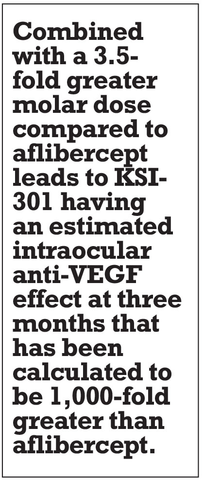 That Phase Ia trial involved nine patients with diabetic macular edema. They received a single dose of KSI-301, which showed a durability of effect through 12 weeks without any drug-related adverse events.