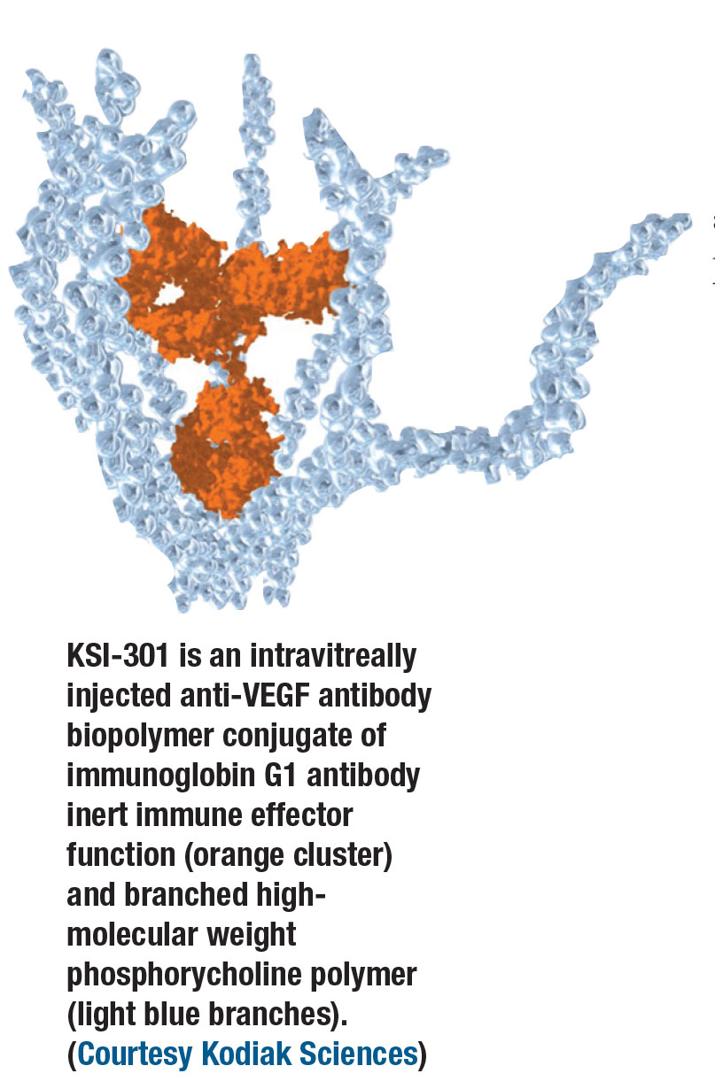 KSI-301 is an intravitreal agent based on a novel platform, called antibody biopolymer conjugate, or ABC, that uses a large molecular structure to bind to and inhibit vascular endothelial growth factor.