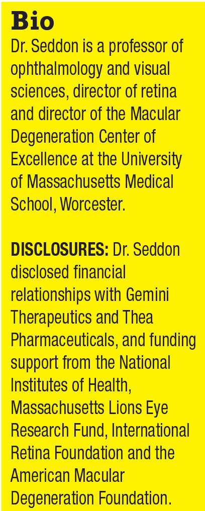 2. Seddon JM, Francis PJ, George S, Schultz DW, Rosner B, Klein ML. Association of CFH Y402H and LOC387715 A69S with progression of age-related macular degeneration. JAMA. 2007;297:1793-1800.