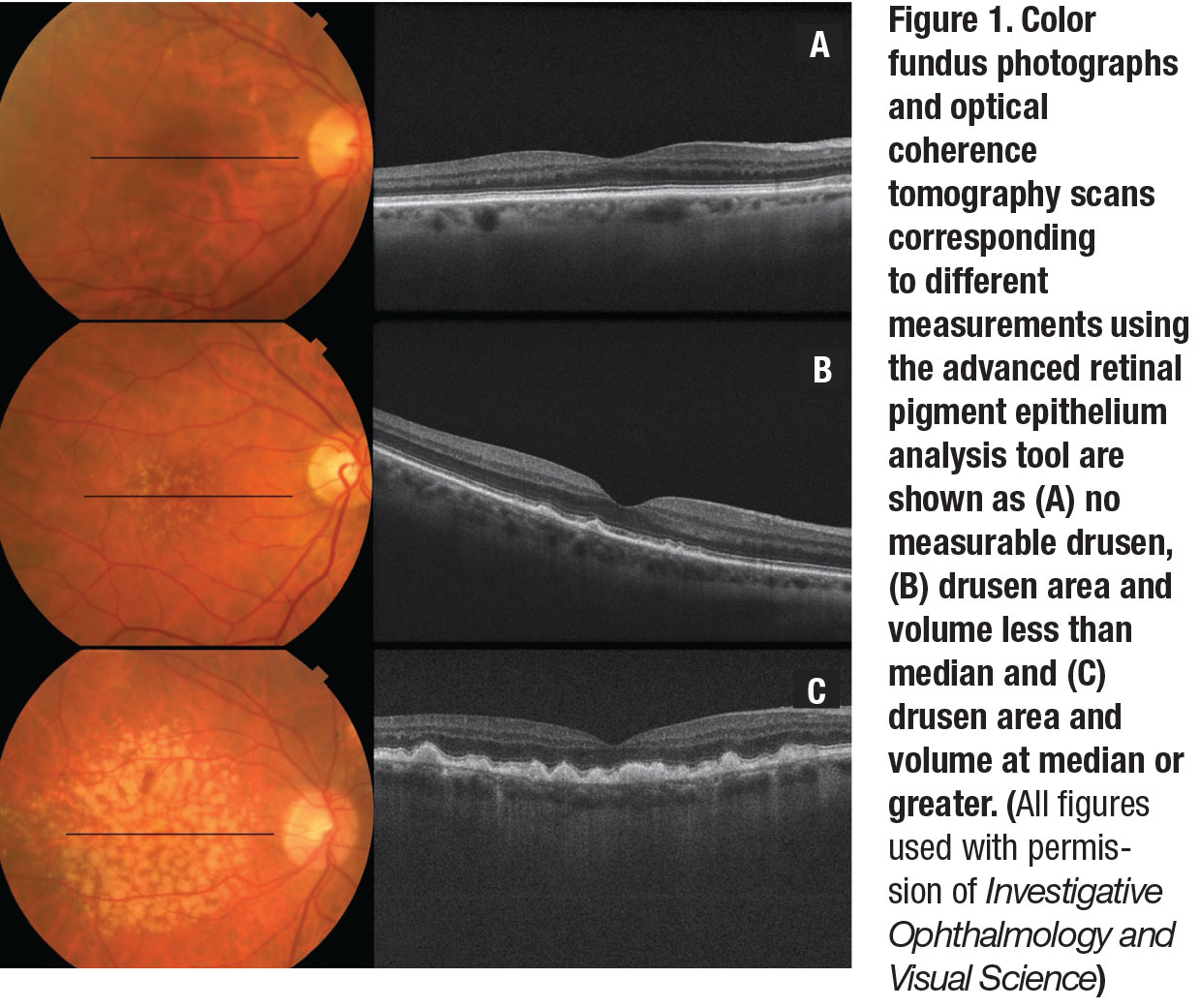 7. Abdelfattah NS, Zhang H, Boyer DS, et al. Drusen volume as a predictor of disease progression in patients with late age-related macular degeneration in the fellow eye. Invest Ophthalmol Vis Sci. 2016;57:1839-1846.