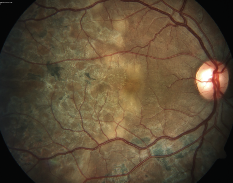 • Syphilis. Known as the “great masquerader,” syphilis has diverse manifestations, including anterior uveitis, vitritis, chorioretinitis, serous retinal detachment, retinal vasculitis and neuroretinitis.9 A hallmark presentation is acute syphilitic posterior placoid chorioretinitis, which features large retinal whitening or solitary pale placoid lesions with central fading and coarse hyperpigmentation. These lesions may be accompanied by vitreous inflammation, hemorrhages, retinal vasculitis, optic disc edema and serous retinal or RPE detachment.10 A rarer form, syphilitic punctate inner retinitis, presents with superficial retinal precipitates, white spots in the inner retina and preretinal space, along with inner retinitis and arteriolitis.11