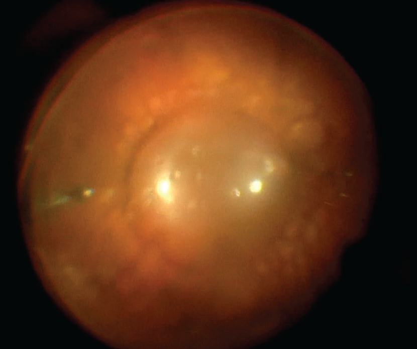 Dense and viscous silicone oil and perfluoro-n-octane mixture on the posterior retina surface. |