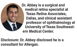 This study suggests that topical dorzolamide-timolol may be an easily administered and effective topical adjuvant therapy for recalcitrant neovascular AMD. Larger, controlled studies will be useful to validate these intriguing findings. The authors had no relevant disclosures.4441;Poster #A0346