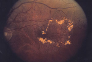 A subretinal injection of an AAV vector encoding the choroideremia gene was performed after vitrectomy in six eyes. Five eyes received a dose of 1,010 genome particles, and one eye received a dose of 6 x 109. The fellow eye was left untreated as a control in all six patients.