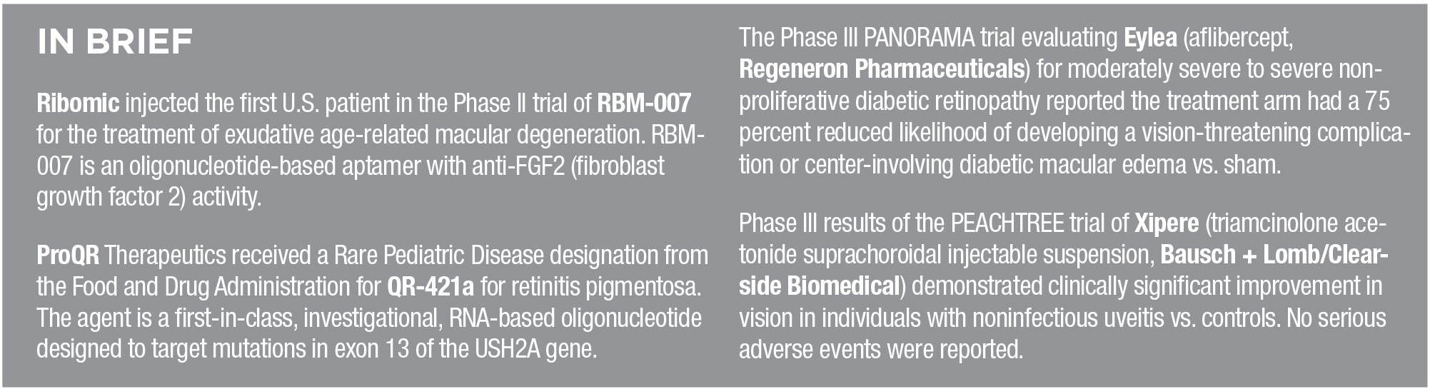 Dr. Kayath adds that the reported incidence of the adverse events is within the rates on the package insert, which reports a 4 percent rate of intraocular inflammation and retinal hemorrhage and a 1 percent rate of retinal artery occlusion. “We’ll continue to monitor the safety of Beovu,” she says. “We are committed to sharing the outcomes of the investigation as soon as it’s completed, and we stand by the safety and efficacy of Beovu.”