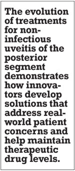 Retina and uveitis specialists have used implant therapies that slowly elute drug to reduce treatment burden since 2008, when the fluocinolone acetonide intraocular implant 0.59 mg (Retisert, Bausch + Lomb) was shown to be safe and effective for noninfectious uveitis of the posterior segment (NIU-PS).1 David G. Callanan, MD, and colleagues demonstrated the safety and efficacy of Retisert, which is surgically implanted, in 2008.1