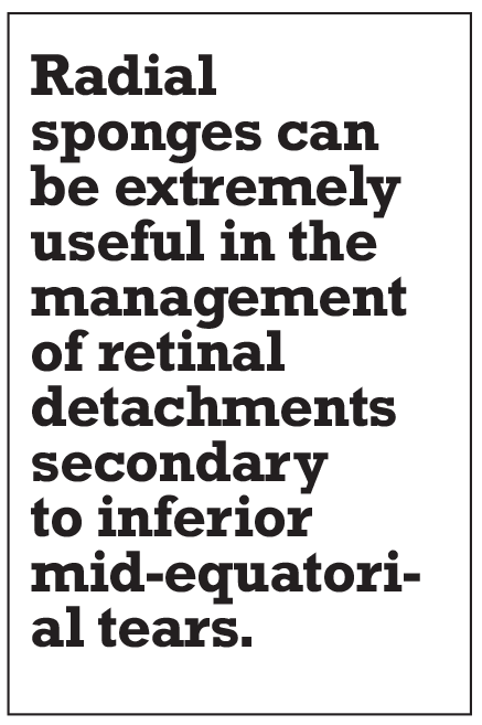 Radial sponges can be extremely useful in the management of retinal detachment secondary to inferior mid-equatorial tears (Figure 8).1