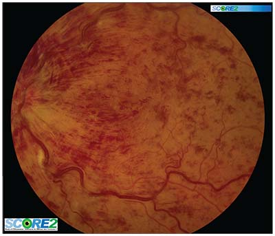 | Figure. A baseline image from the Study of COmparative Treatments for REtinal Vein Occlusion 2 (SCORE2) trial showing central retinal vein occlusion associated with macular edema. |