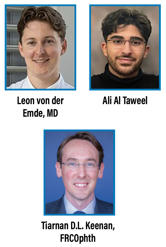 Bios Dr. van der Emde is a researcher at the Division of Epidemiology and Clinical Applications, National Eye Institute, National Institutes of Health in Bethesda, Maryland, and a clinician scientist at the Department of Ophthalmology at the University of Bonn in Germany. Mr. Al Taweel is a 4th-year medical student at the University of Bonn. Dr. Keenan is a staff clinician in medical retinal disease at the National Eye Institute. This work was supported by the Intramural Research Program of the National Eye Institute, National Institutes of Health. |
