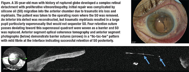 Ronald Gentile, MD, and Dean Eliott, MD, described placement of SO retention sutures in such cases, which provide an artificial barrier to decrease risks associated with a unicameral eye.1 Others have described variations of this technique, and a recent series confirmed efficacy in prevention of SO-cornea touch.2