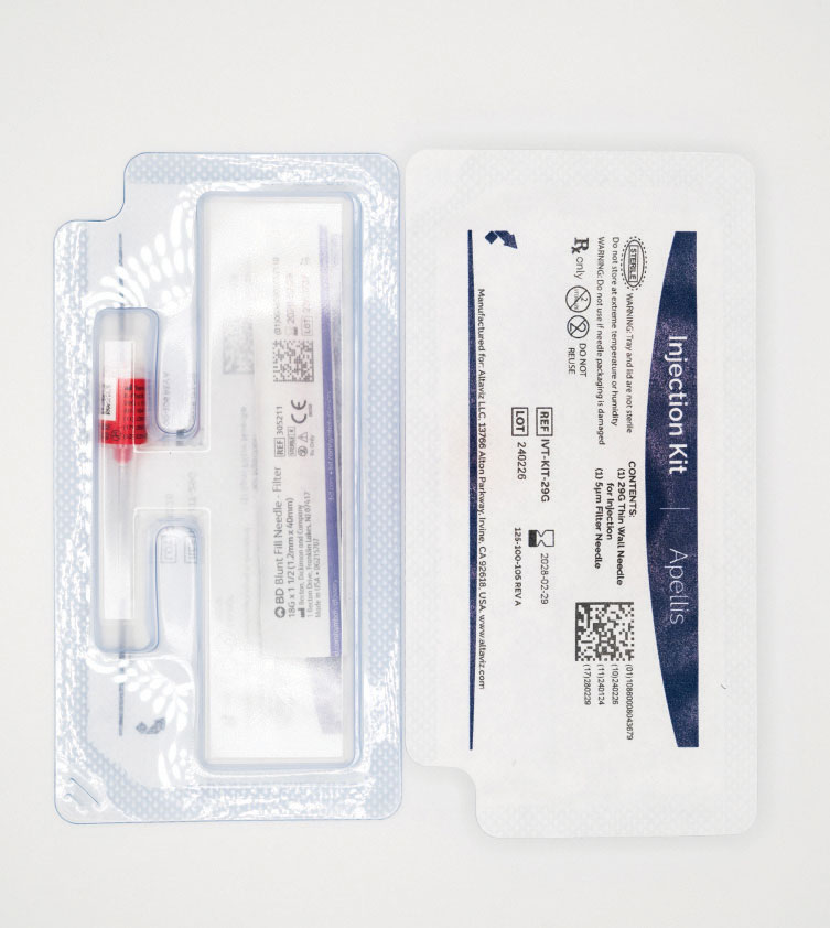 Figure 1. Pegcetacoplan (Syfovre) comes with an accompanying injection kit that contains an 18G filter needle and a 29G thin-walled Luer-lock needle. (Courtesy: Apellis Pharmaceuticals) |
