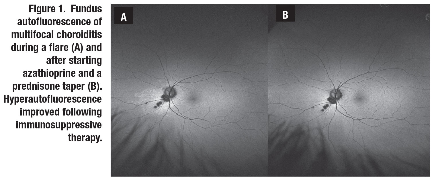 However, azathioprine is often used in women with plans for childbearing due to the teratogenic potential of methotrexate and mycophenolate. In the Systemic Immunosuppressive Therapy for Eye Diseases (SITE) cohort, methotrexate, mycophenolate and azathioprine therapy resulted in control of uveitis with a corticosteroid sparing effect in 58, 55 and 47 percent of subjects, respectively, within a year of therapy (Figure 1, page 11).2-4